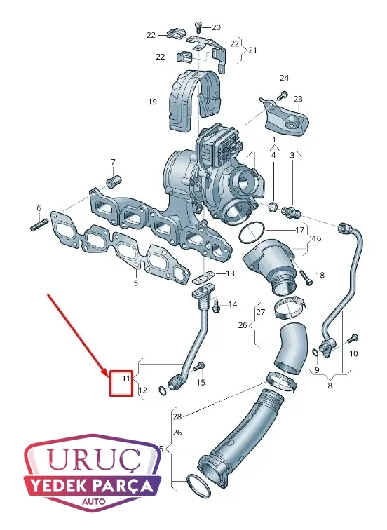 05L145736A ORJİNAL TURBO YAĞ BORUSU AUDİ A3 Q3 VW ARTEON GOLF PASSAT TİGUAN SÜPERB TARRACCO 2015 2024