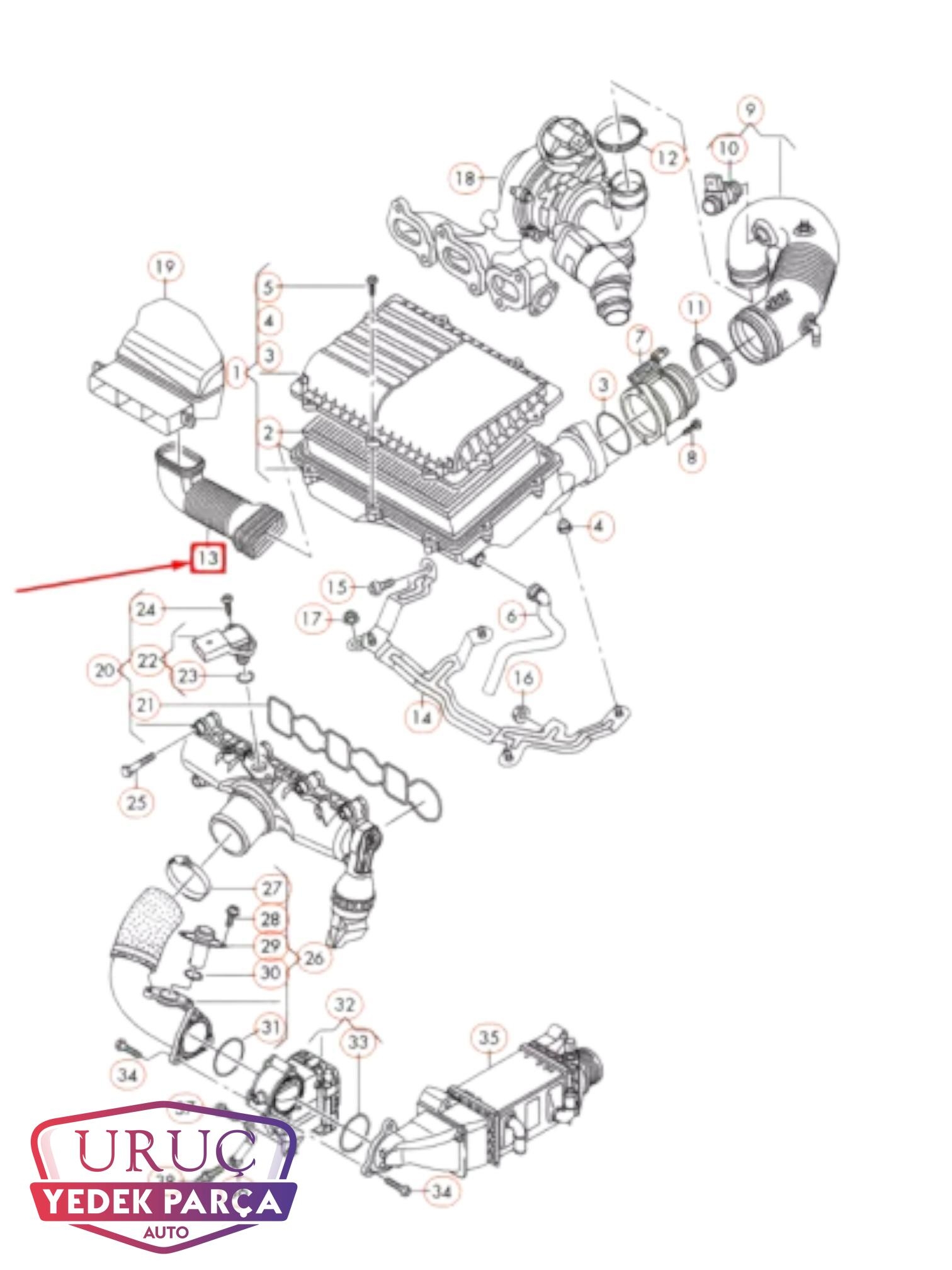 6C0129618B CUS 1.4 TDİ Hava Filtre Ara Borusu
